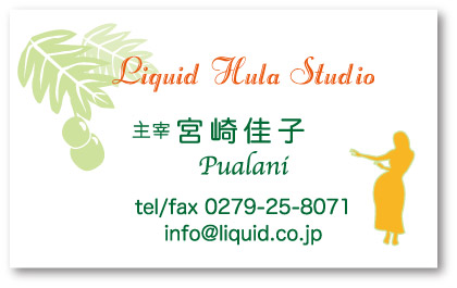 フラダンス教室の先生向け名刺デザインです。生徒の方にお教室の明るく楽しい雰囲気を伝えることができます。