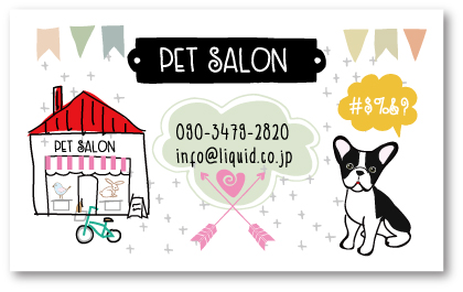 フレンチブルドッグファンのために、可愛らしペットサロン名刺。