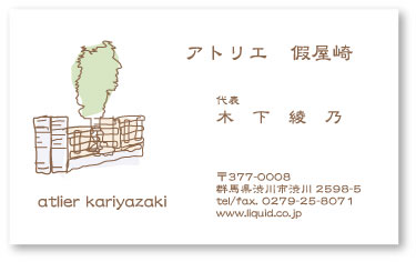 造園業・植木名刺。門先に立つ木をしい優しいイラストで表現しました。造園業の方、植木屋さんいかがでしょうか。。お客様のリクエストにより、お作りしました。