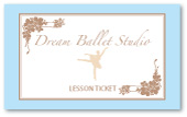 紺色のチュチュを着てルルベでポーズするバレリーナのエレガントなイラストで。アンティーク感のあるテイスト。シンプルで落ち着いたバレエ教室向けポストカードチラシデザイン