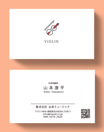 バイオリニストのあなたにとってバイオリンは自分の体と一体化した分身、そのバイオリンをモチーフにした名刺もまたあなた自身。あなたの音楽、演奏、仕事、人に対する愛と思いを相手の方に伝えてくれる素敵なバイオリン名刺デザインをご用意しました!